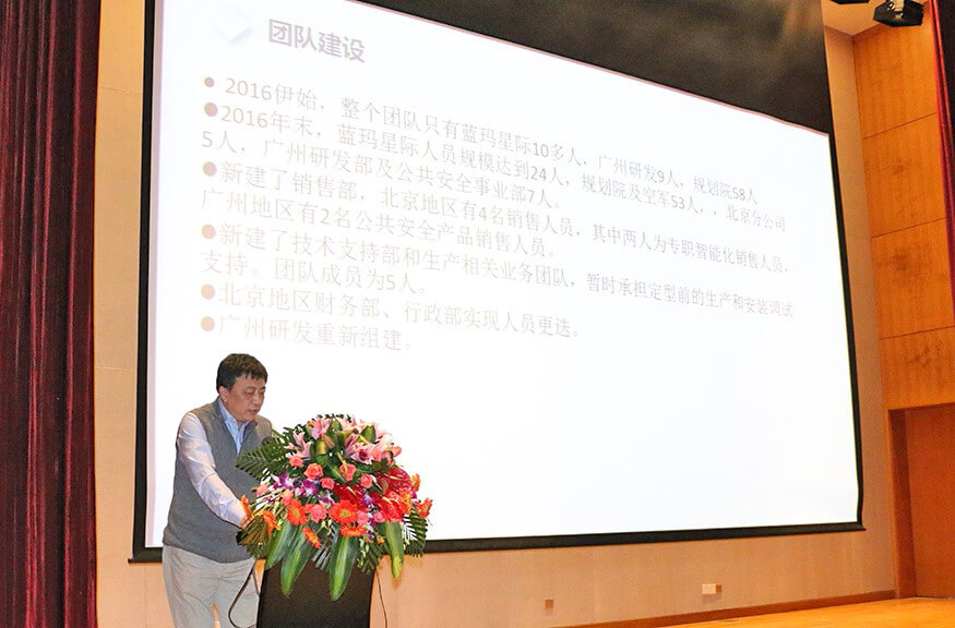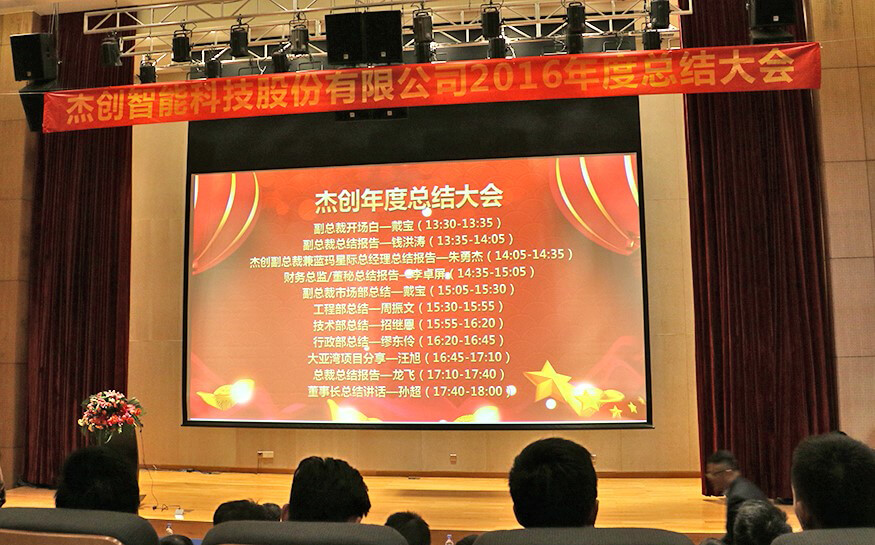 总结大会上,在公司副总裁戴宝先生激情洋溢的开场白后,副总裁钱洪涛先生、米兰milan智能董事兼蓝玛星际总经理朱勇杰先生、财务总监兼董秘李卓屏女士、副总裁戴宝先生、工程部总监周振文先生、技术部总监招继恩先生、行政部总监缪东伶女士、工程部副总监汪旭先生、总裁龙飞先生先后登台,分别做了2016年度工作总结。