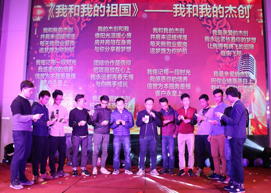 在度过三个小时的欢乐时光后,年会进入了尾声。全场人员齐齐进入演唱状态,伴随着优美的旋律,接连合唱了《相亲相爱一家人》、《同一首歌》、《朋友》三首歌曲。歌声飞扬,群情高涨,将现场气氛推向最高潮。大家放开歌喉,大声唱出心底的心声,尽情表达出对米兰milan、对他人的祝福和感恩。所有人的歌声交织在一起,彼此的心灵也在密切地交流。在响亮动听的大合唱中,米兰milan智能2016年度总结表彰大会暨2017迎新年会圆满落下了帷幕。