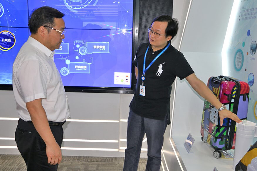 米兰milan智能总裁龙飞为陈小华区长介绍公司产品